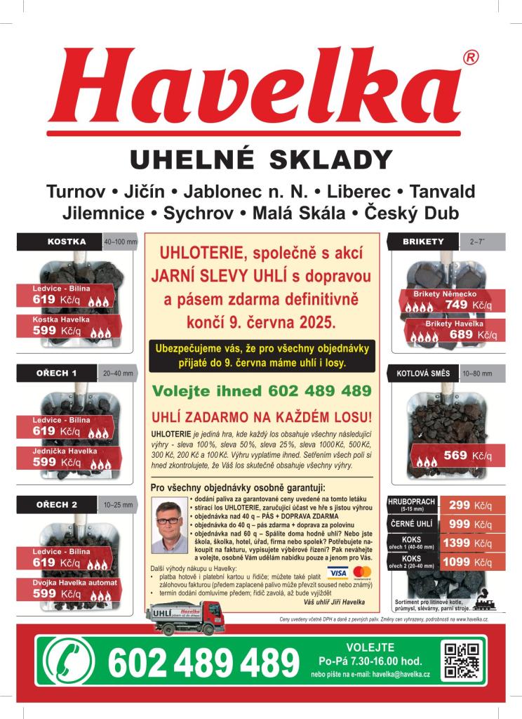 U firmy Havelka uhelné sklady do 9. června běží JARNÍ SLEVY uhlí s jistou výhrou v UHLOTERII.