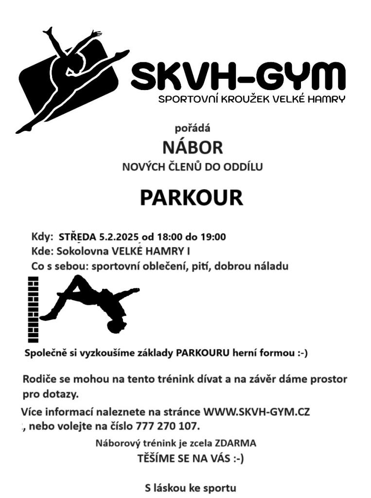 Nábor nových členů do sportovního kroužku PARKOUR SKVH-GYM