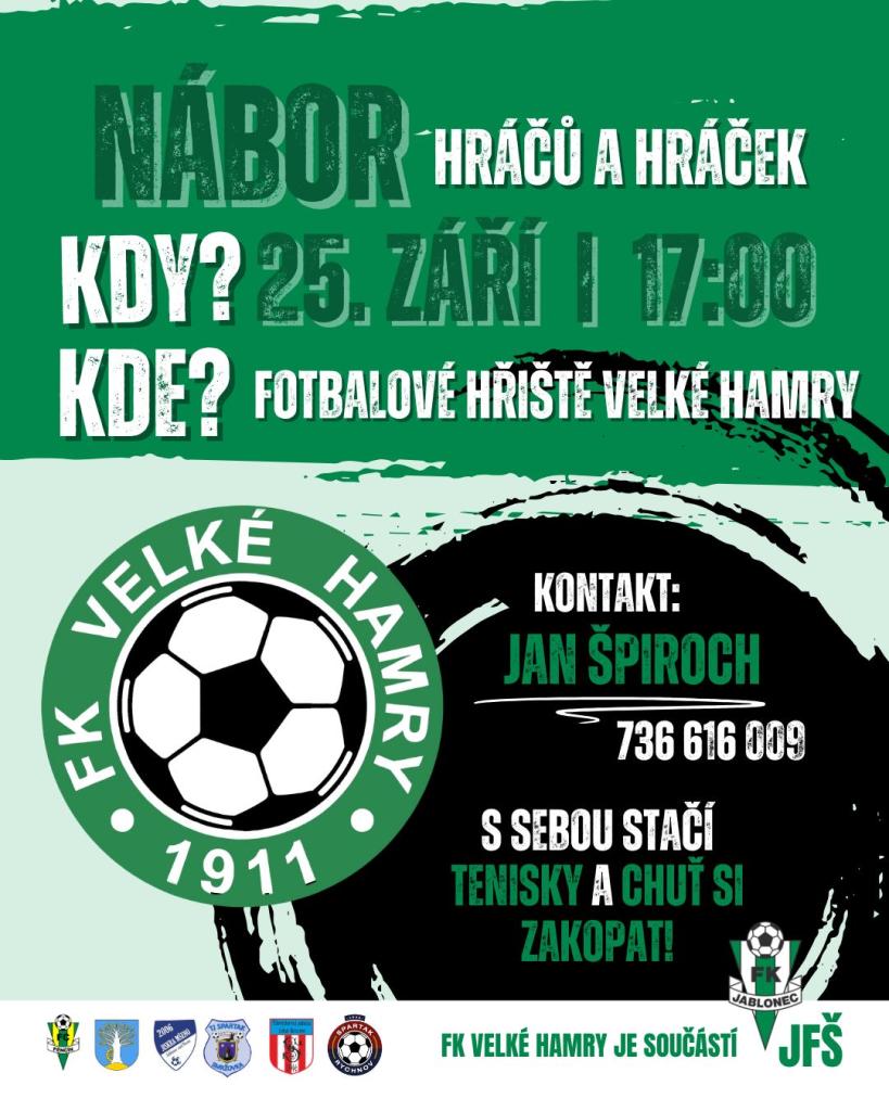 25.září od 17 hodin na hřišti ve Velkých Hamrech