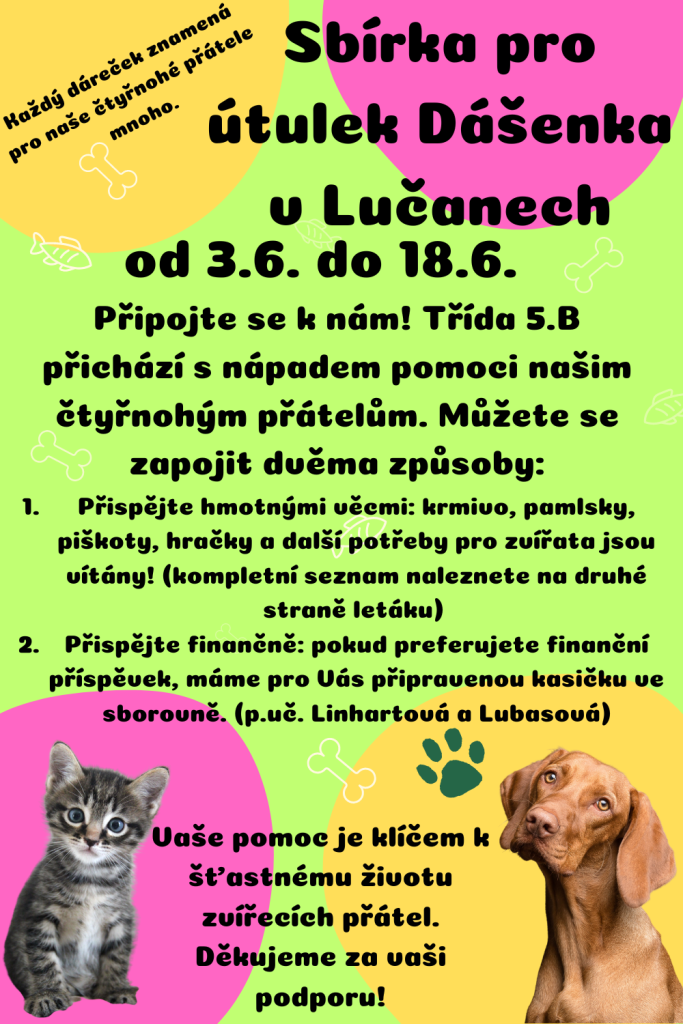Podpořte dobrou věc organizovanou 5.B ze ZŠ a MŠ Velké Hamry.