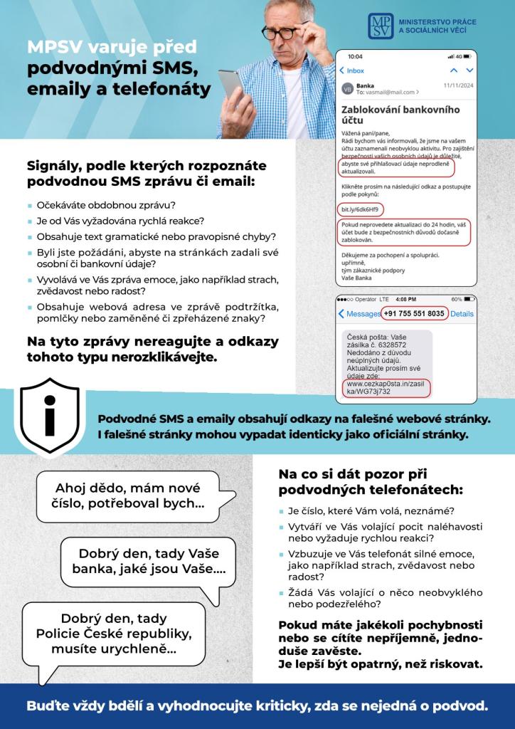 Ministerstvo práce a sociálních věcí varuje především seniory, kteří jsou nejohroženější skupinou. Dávejte si pozor a buďte obezřetní.