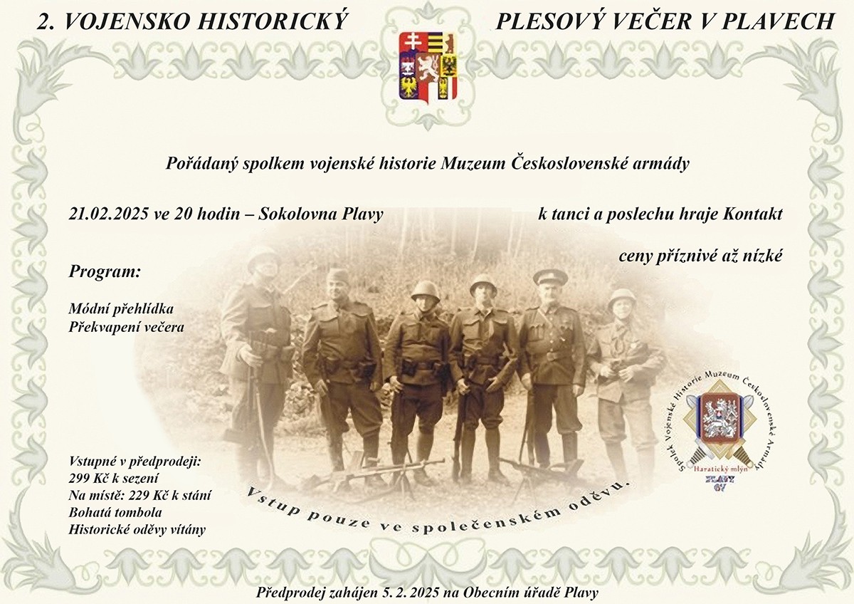 Poslední volné lístky na akci v předprodeji na Obecním úřadě v Plavech na pátek 21.2.2025.