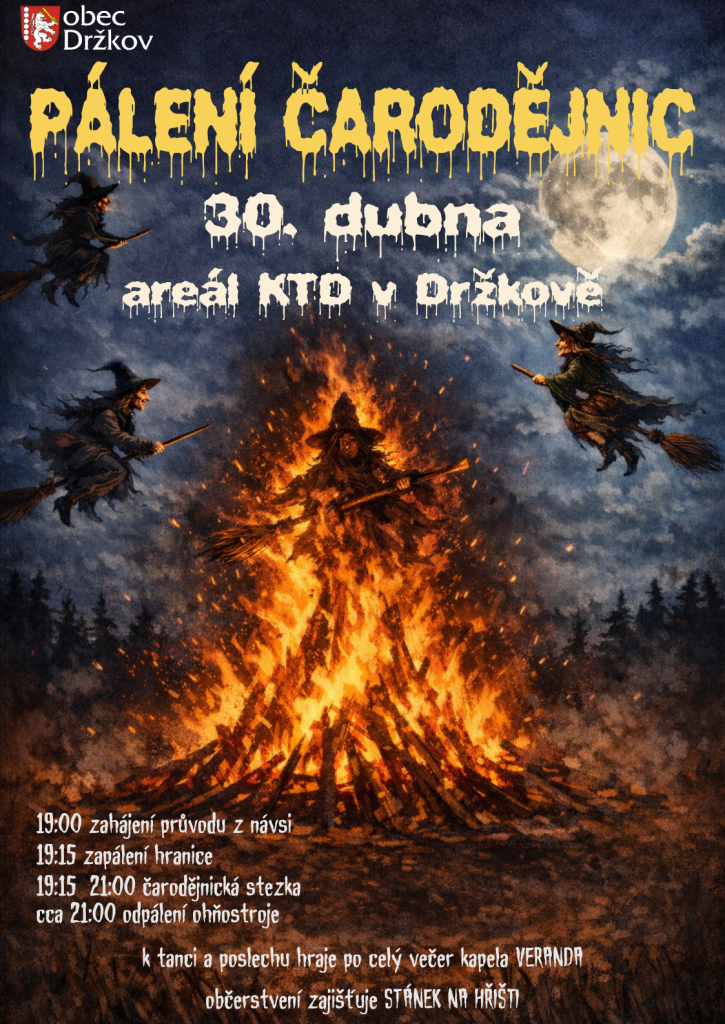 Rádi bychom Vás pozvali na tradiční pálení čarodějnic. Pro návštěvníky bude připravena čarodějnická stezka s úkoly.
