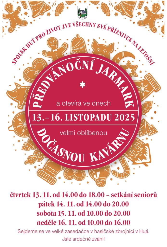 Předvánoční jarmark s dočasnou kavárnou v Huti