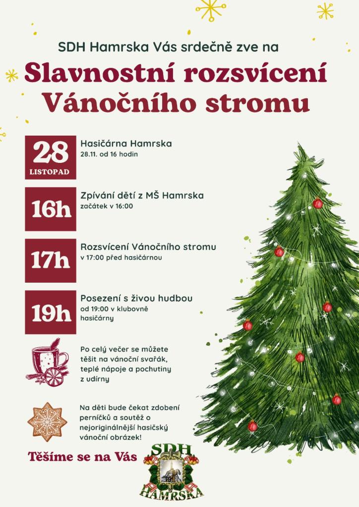 V pátek 28.11. od 16 hodin u hasičárny Hamrska.